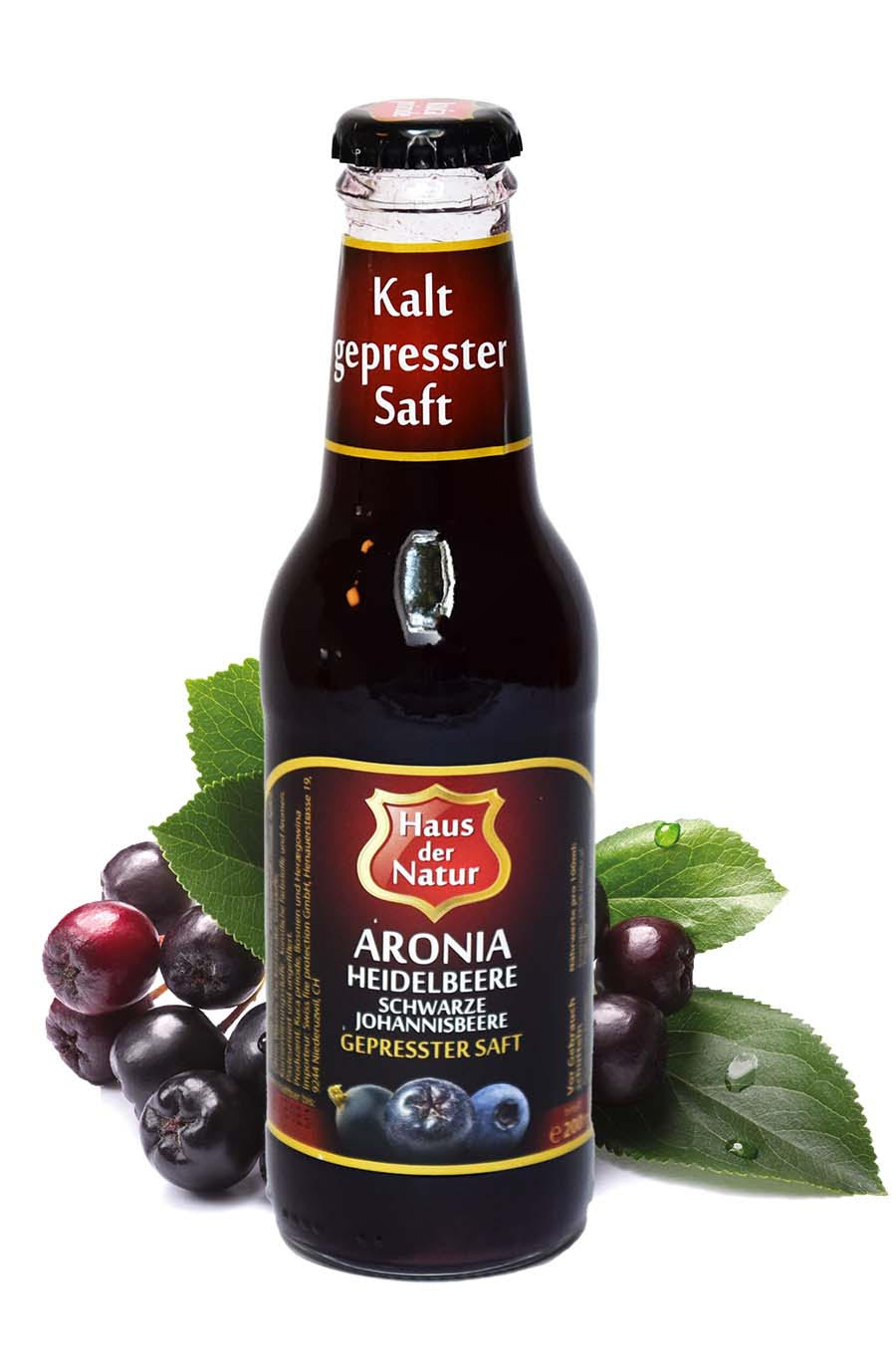 Saft aus naturbelassenen gepressten Aronie – Heidelbeeren – schwarzen Johannisbeeren. Zutaten: 65% Fruchtsaft (Aronia, Heidelbeere, schwarze Johannisbeere), 35% Fruchtsaft (Traube, Apfel) Pasteurisiert und ungefiltert. Ohne Wasser, Zuckerzusatz, Süssstoffe, Konservierungsstoffe, künstliche Farbstoffe und Aromen.